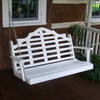 Bask in those beautiful warm days and evenings with the Polyresin Marlboro Porch Swing from Outdoor Furniture Plus. The slatted back of this swing provides coolness, while its gently rocking motion will rock away your cares. This swing also boasts carefree maintenance, requiring little attention beyond an occasional cleaning. Its available in 4 or 5 widths and your choice of 13 beautiful colors. Add an optional cup holder for drinks, if you like.