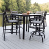 Our Berlin Gardens Vida Dining Set includes the following: (1) 44" square Aluminum Bar Table, (2) Vida Sling Bar Chairs & (2) Vida Sling Swivel Bar Chairs.
