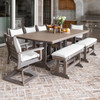 This Bristol Resin Dining Set includes: (2) Bristol Swivel Rocking Dining Chairs, (4) Bristol Dining Chairs, (2) Garden Classic 44" Dining Benches and (1) 44" x 96" Garden Classic Rectangular Dining Table. Shown in Weatherwood on Coastal Gray (upgrade natural finish). Seat cushions shown in these images are not included with this set but can be ordered individually.