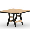 The table tops are crafted using "poly lumber" or boards featuring slats that allow water to drain between boards.