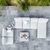 Our Holland Patio Lounge Set Includes: (1) Holland Sofa, (1) Holland Loveseat, (1) Holland Chaise Lounge Chair, (1) Holland Square Coffee Table & (1) Holland Corner End Table. Above set shown in Matte Black with Blend Linen Cushions. You may select your own fabrics and are not locked into the above shown options. This set is priced with a boxed cushion as shown but can also be purchased with a bullnose cushion. Call for information.