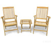 With this Regal Teak Lounge set you will recieve: (2) Teak Folding Armchairs & (1) Teak Folding Side Table or Ottoman.