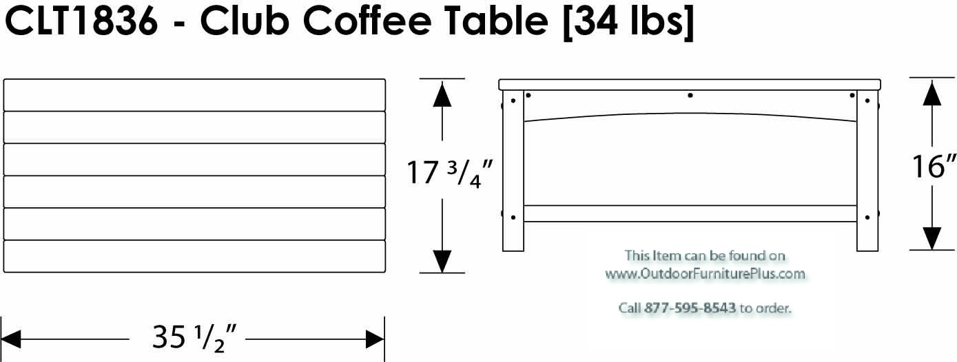 The POLYWOOD® Outdoor Club Collection, manufactured by POLYWOOD® Inc., is uniquely designed for rigorous all-season use and to make the best possible use from recyclable materials. These pieces which include this POLYWOOD® club coffee table, are formed from high-density polyethylene (HDPE), an extremely durable material that has exceptional resistance to household chemicals, salt spray and oil. The POLYWOOD door coffee table has the appearance of wood, but won't splinter, peel, crack or rot. The POLYWOOD® coffee table from Outdoor Furniture Plus is available in black or white and it's shipped free of charge.