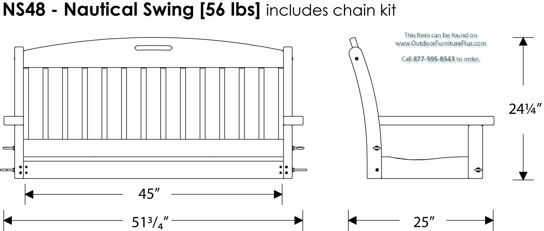 Enjoy your outdoor environment with a new POLYWOOD® nautical 4-foot swing. Whether your view is of ocean waves, a serene pond or your flowering garden in the springtime, its traditional appearance will take you back to a simpler time. The beauty of this 4-foot POLYWOOD® swing is that it looks like real wood, but it's earth friendly and far more durable. This poly resin nautical swing is made from recycled materials by certified POLYWOOD® builders. It has a curved backrest for maximum comfort, sturdy frame and chains with a flat base and is backed by a 20 year limited manufacturer warranty. These resin outdoor swings are made for all-season use and are resistant to rot and corrosion. For the complete line of resin outdoor furniture, see the POLYWOOD® Outdoor Nautical Collection from Outdoor Furniture Plus.