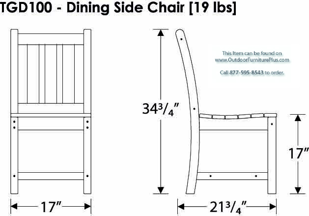 If you're looking for a POLYWOOD® traditional dining chair, the POLYWOOD® Traditional Garden dining side chair just might be the answer. This stately look works nicely in more formal outdoor decor. It has the appearance of fine wood, but the innovative high-density polyethylene lumber and marine grade stainless steel hardware is what you need for beautiful year-round performance. This material is resistant to rot and corrosion despite whatever is thrown at it. It won't rust, splinter or rot, and it's simple to clean with just soap and water. Choose from several frame colors. Because the color runs through the entire piece, you'll never have to refinish or repaint. Outdoor Furniture Plus offers free shipping on this piece and on every order more than $100.