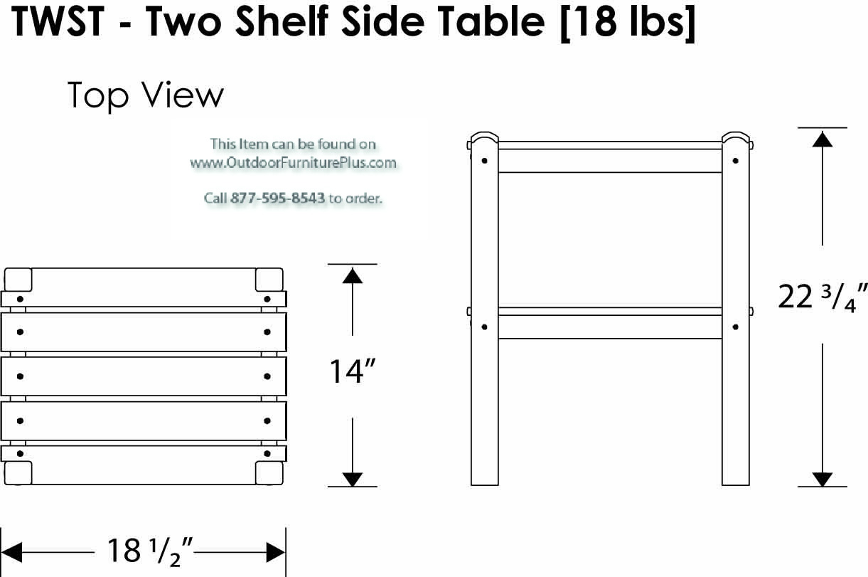 If you need a small side table to complement your patio furniture or add a little table space for practical reasons, the POLYWOOD® two-shelf side table is the perfect choice. It has the look and feel of wood furniture, but because it's made from high-density polyethylene (HDPE), it's far better suited for daily outdoor use. This innovative material, made from recycled plastic, is weather resistant and immune to whatever outdoor life throws at it. Outdoor two shelf side tables such as this one have many uses. You can store magazines on the bottom shelf with a plant on the top. Use the POLYWOOD® outdoor side table with two shelves to hold your reading material and refreshment or as an additional small table when entertaining. Outdoor Furniture Plus offers free shipping on all orders more than $100.