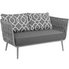 Ample support and tons of global-inspired style make our DecoScape Aria Loveseat a must-have for afternoon naps and chats with good friends. Relax in casual, contemporary style with this piece from Outdoor Furniture Plus, which is made with a powder-coated aluminum frame and wrapped in Durastrap, a hard-wearing, weather-resistant material. Select your favorite Duraweave and frame color, seat fabric color, and back cushion fabric color to create the chair of your dreams. There are thousands of possible combinations! Think about getting a coffee table as well for a complete space.
