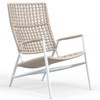 A modern interpretation of the classic Adirondack chair, this high-back accent chair helps you lounge in global style and supreme comfort. It boasts a scratch-resistant aluminum frame and hand-woven rope on the back and seat. So it’s strong and supportive. Better still, this metal and rope chair from Outdoor Furniture Plus is lighweight. Move it anywhere you want in an instant! Pair with the matching low-back accent chair for extra visual intrigue.
