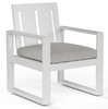 Sunset West's Newport Dining Armchair. Seat Cushion comes standard in Sunbrella Cast Silver but custom fabric may be ordered.