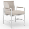 Sunset West's Sabbia Dining Armchair. Cushion comes stocked in Sunbrella Echo Ash but custom fabric may be ordered.