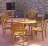 Welcome to your destination for all of your al fresco get-togethers! This Three Birds 36" Round Oxford Table with 4 Sedona Chairs Set from Outdoor Furniture Plus creates a space where memories will be made for numerous years. Crafted of smooth grade-A teak, the table features a pedestal for extra legroom, but adds a slatted top and umbrella hole for extra visual interest and shade. It also comes with stainless steel hardware and comes with four durable, slat-back Sedona Chairs boasting a contemporary, supportive design. Just add an outdoor umbrella to finalize your patio!