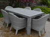 Mixing modern, classic, and global elements, the Three Birds 74" Shelburne Table with 6 Viena Chairs Set from Outdoor Furniture Plus is a gorgeous style combination. The plank-top teak table is easy to assemble with stainless steel hardware and features a slatted top and umbrella hole. Surround this chic outdoor table with the curved backs, sloping arms, and tapered legs of our wicker dining chairs, which deliver effortless elegance to your porch or patio. Think about adding a heater to your outdoor space for cooler nights.