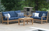 Just like the lush Caribbean island nation it is named for, the Three Birds St. Lucia Four-Piece Deep-Seating Outdoor Set from Outdoor Furniture Plus offers natural beauty thats ready to offer you laid-back relaxation in fine weather. Made of grade A, plantation-grown teak, this lovely set includes one St. Lucia Sofa, one St. Lucia Loveseat, one 25 x 40 coffee table and one 22 side table. A variety of weather-resistant Sunbrella fabrics are available for the seating.