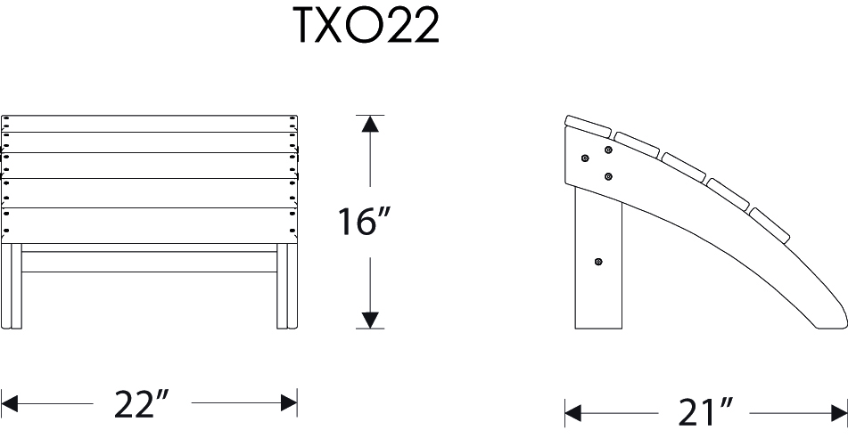 Add a finishing touch to your Adirondack chair with this stylish TREX® Yacht Club Ottoman. The curved silhouette and slatted design match up perfectly with any chair displaying the classic Adirondack style. The durable polyethylene material holds up well to wear and tear and exposure to the elements. Choose from seven beautiful finish colors when ordering this TREX® ottoman from Outdoor Furniture Plus.