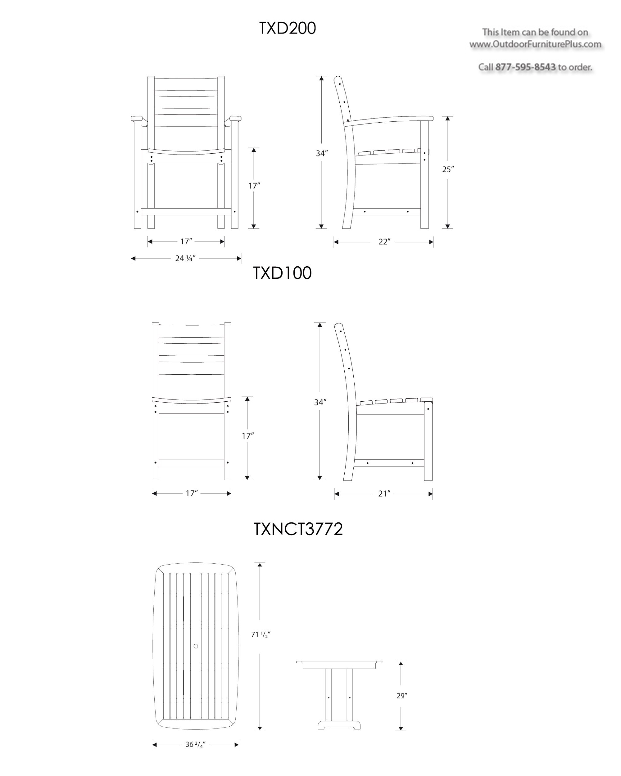 Design the perfect outdoor eating area with the TREX® Monterey Bay Dining Set from Outdoor Furniture Plus. This stylish set includes a 37- by 72-inch table, four dining side chairs and two dining arm chairs. Choose from seven colors to create your custom set, and add optional seat cushions if you wish. Each piece of furniture in the set is made from high-density polyethylene lumber to ensure superior durability.