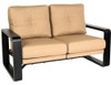 Our Aluminum Vale Dual Rocking Loveseat - Shown in Neutral Color Fabrics.